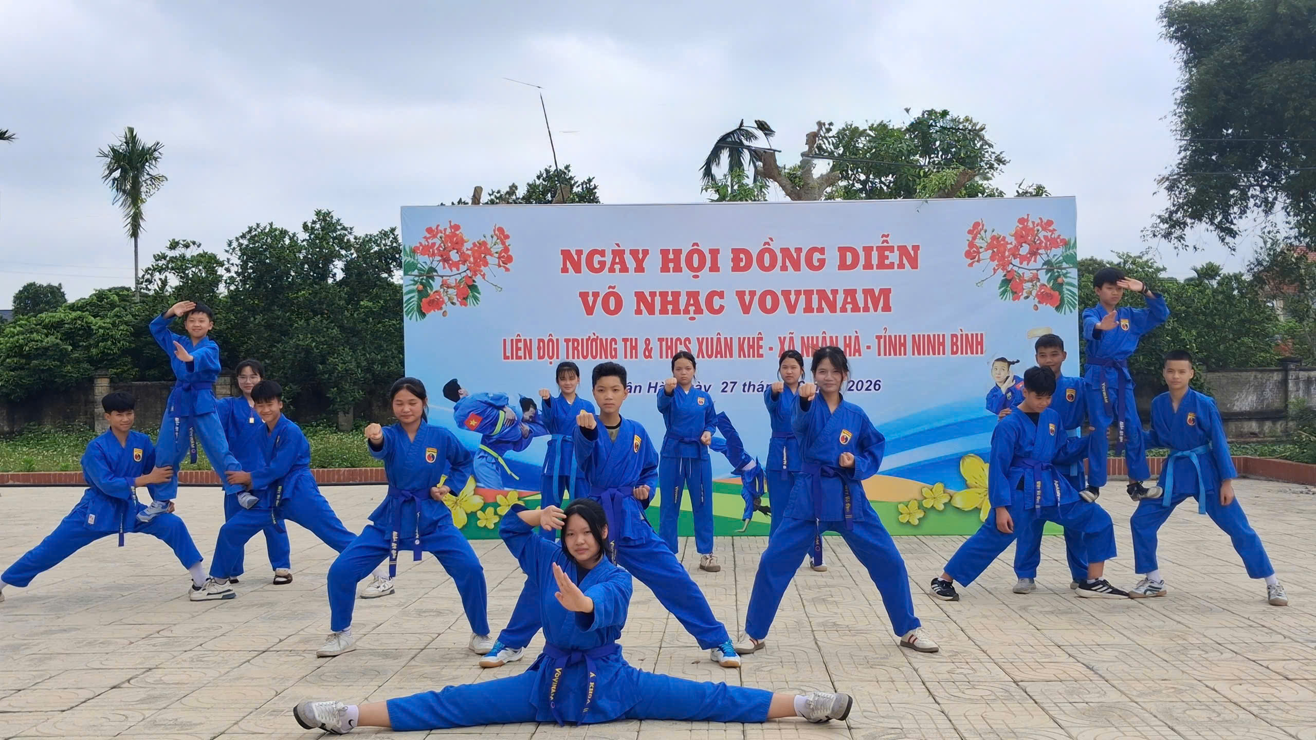 Màn đồng diễn võ nhạc Vovinam của liên đội TH – THCS Xuân Khê